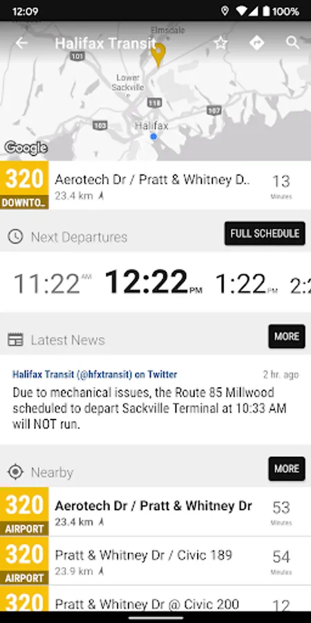 This app provides the schedule as well as real time major disruptions and news from @hfxtransit on Twitter.
