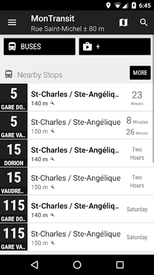 Once this application is installed, the MonTransit app will display buses information (schedule...).
