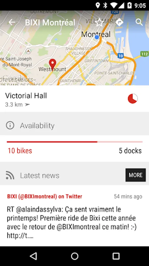 Once this application is installed, the MonTransit app will display bike stations information (number of available bikes & docks).
