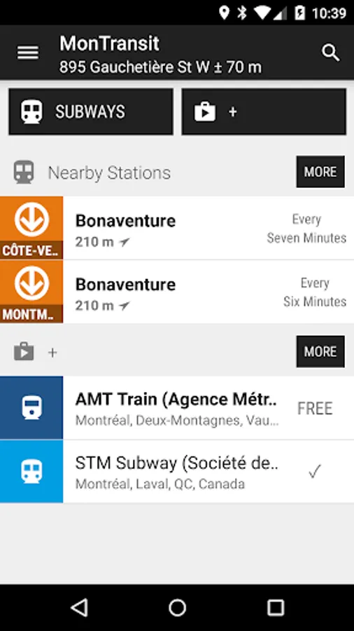 Once this application is installed, the MonTransit app will display subways information (schedule...).