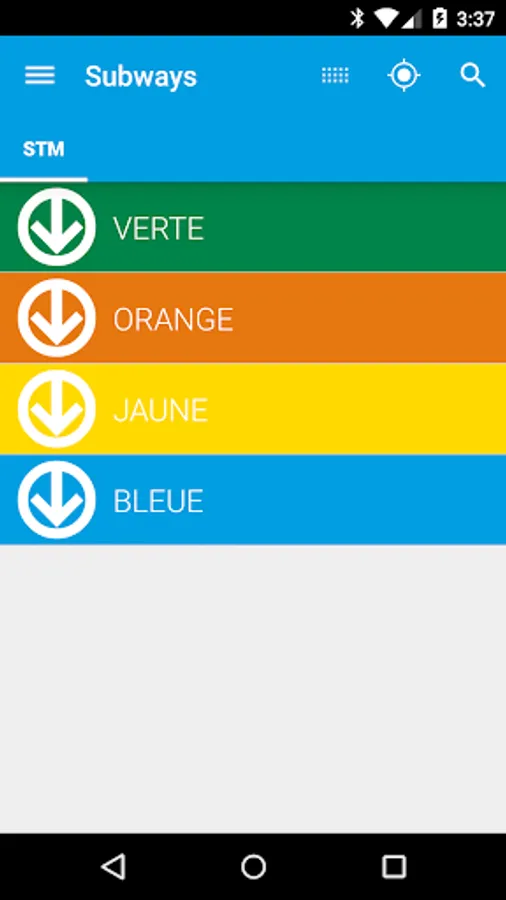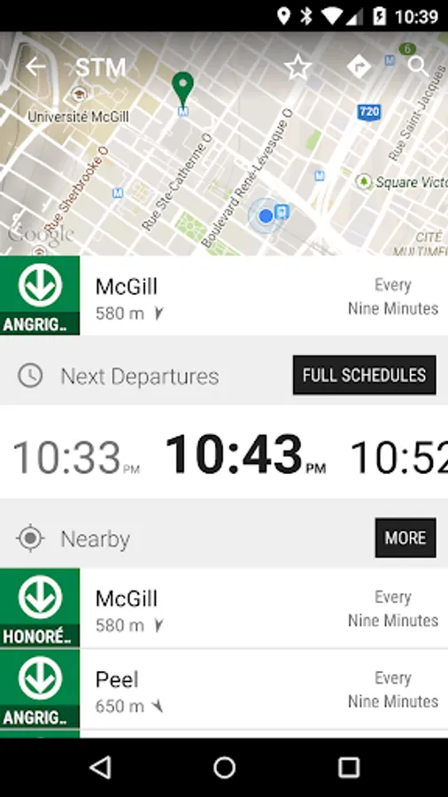 This app provides the planned schedule as well as real time service updates from www.stm.info and the latest news from www.stm.info and @stminfo, @stm_Orange, @stm_Verte, @stm_Bleue, @stm_Jaune and @stm_nouvelles on Twitter.