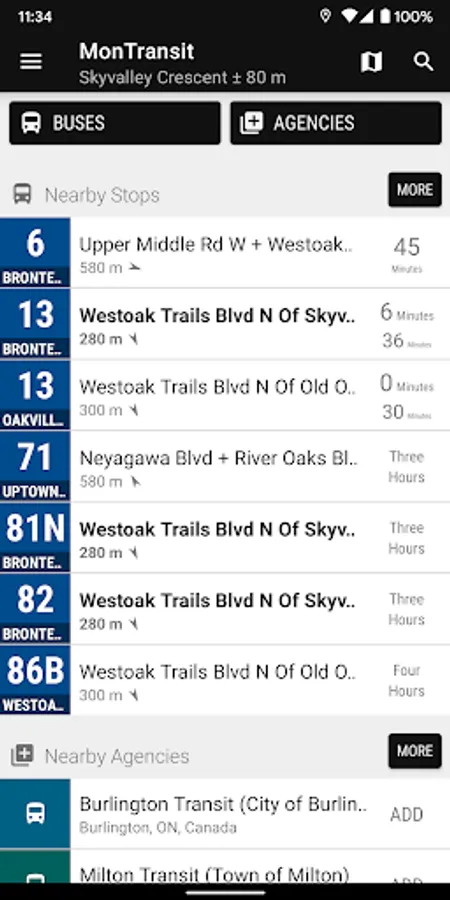 Once this application is installed, the MonTransit app will display buses information (schedule...).