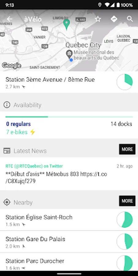 This app contains the bike stations position & availability as well as the latest news from @RTCQuebec on Twitter.