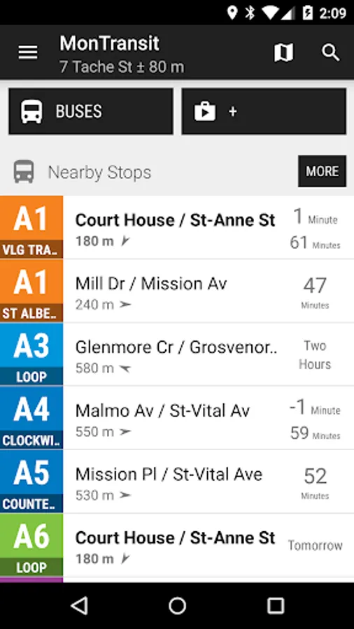 Once this application is installed, the MonTransit app will display buses information (schedule...).
