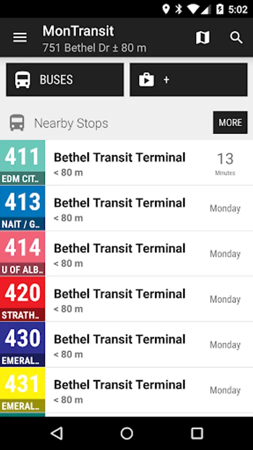 Once this application is installed, the MonTransit app will display buses information (schedule...).
