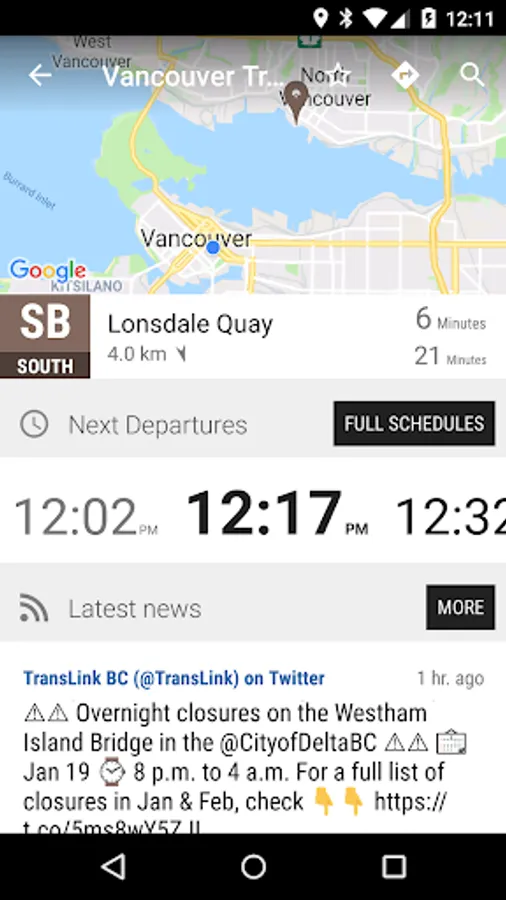 This app provides the ferry schedule and news from www.translink.ca and @TransLink and @TransLinkMedia on Twitter.