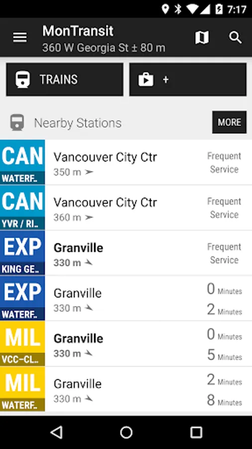Once this application is installed, the MonTransit app will display trains information (schedule...).