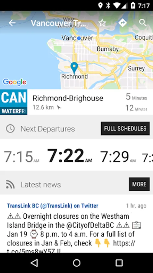This app provides the trains schedule and news from www.translink.ca and @TransLink and @TransLinkMedia on Twitter.