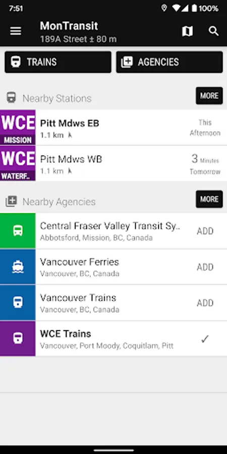 Once this application is installed, the MonTransit app will display trains information (schedule...).