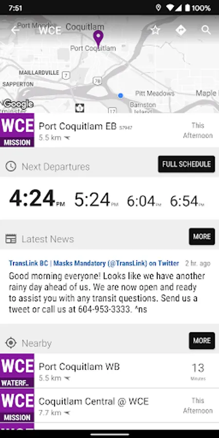 This app provides the train schedule and news from www.translink.ca and @TransLink and @TransLinkMedia on Twitter.