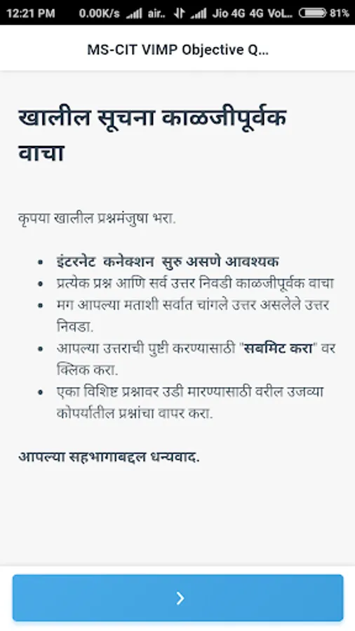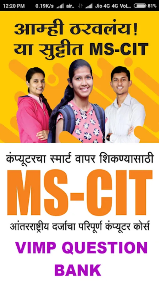 This VIMP App help to prepare theory questions of MSCIT Final Online Exam. More than 200+ questions are available in Marathi Language. This VIMP Questions Bank are developed by Experts for MS-CIT students
