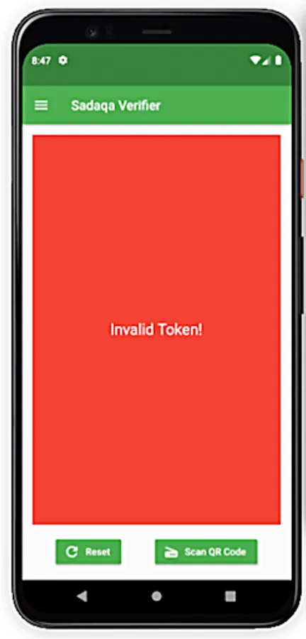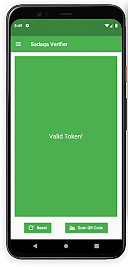 An app to verify validity of QR Code Tokens issued for Sadaqa.
