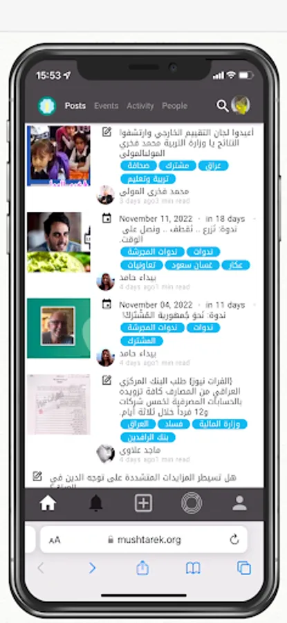 Mushtarek app has all you need in one place to follow the latest social and economic developments in Iraq. Here you can find the latest events, resources, articles and discussions, new course openings and more. Whenever a new discussion is opened, please feel free to share your ideas, leave an opinion or simply interact with others.