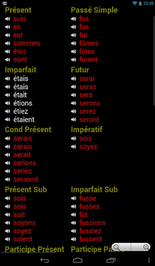 •Verb-forms and translations searchable