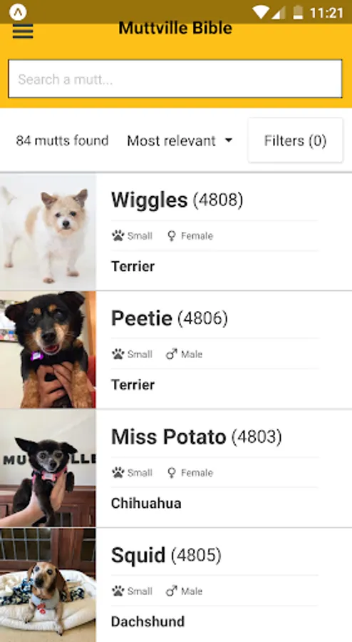 This app is designed for Muttville employees and volunteers! Search our mutt database and get info on our mutts. Coming soon: manage adoption applications and more!