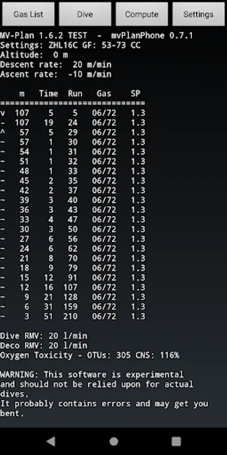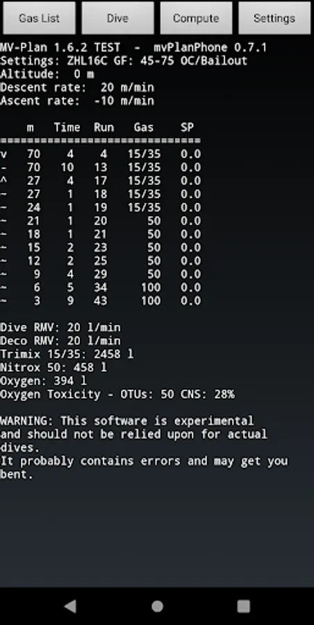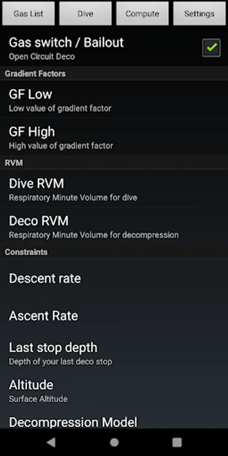 - Adjustable gradient factors, last stop, RMV, Altitude, ascent and descent rate
