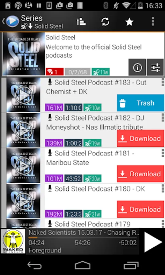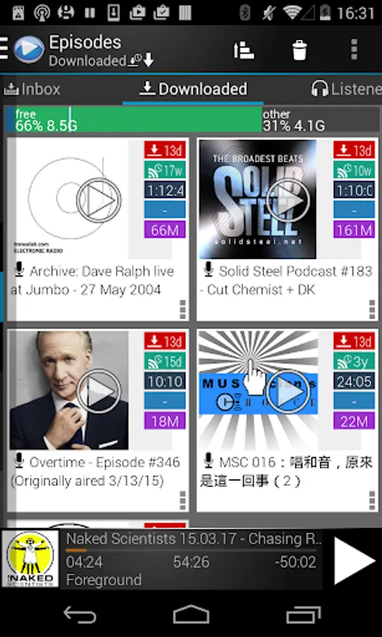 * Auto sorts new/download/listened episodes.