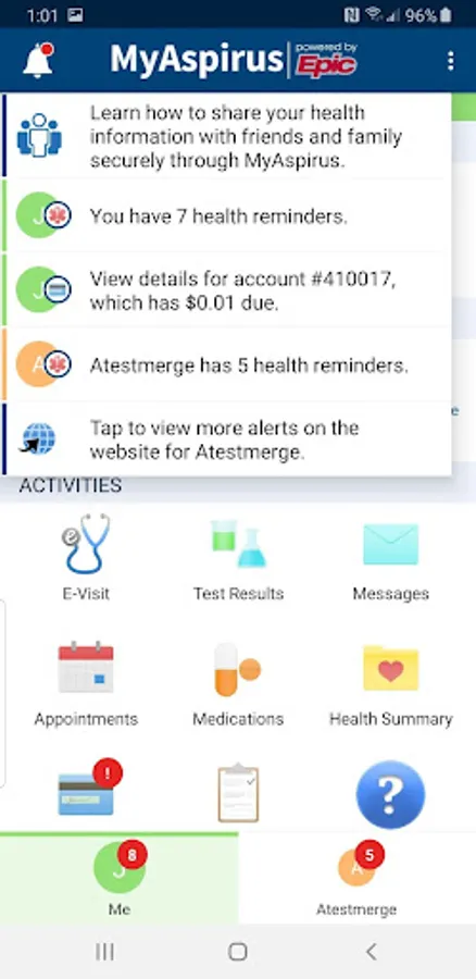 Note that what you can see and do within the MyAspirus app depends on which features your healthcare organization has enabled and whether they’re using the latest version of Epic software. If you have questions about what’s available, contact your healthcare organization.