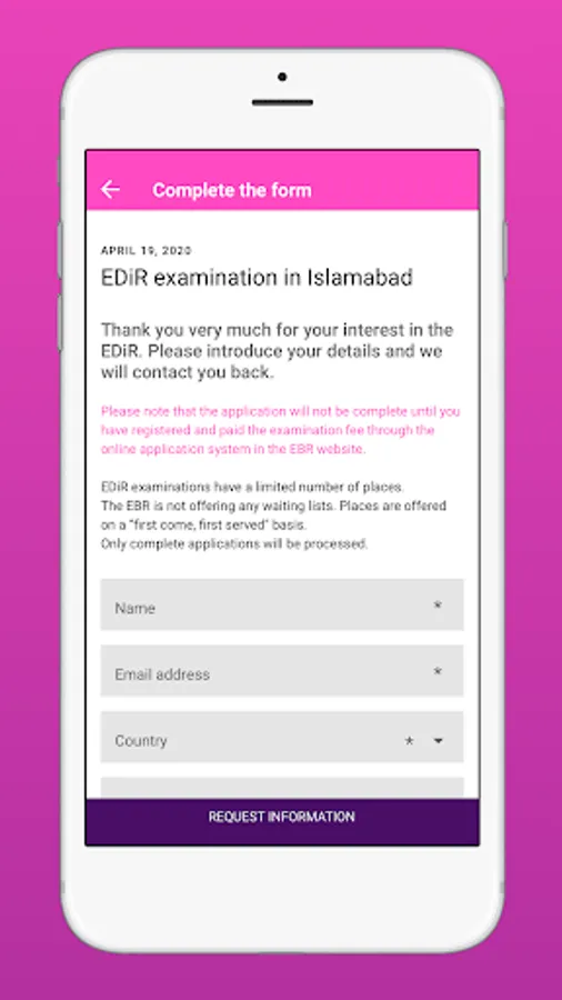 How? By using an app that allows you access to EDiR exams you will be able to practice at any time and anywhere via your mobile. You will also have direct access to a calendar showing you all the current calls around the world and will even be able to register for the exams and be informed about new calls or changes via their notification system.
