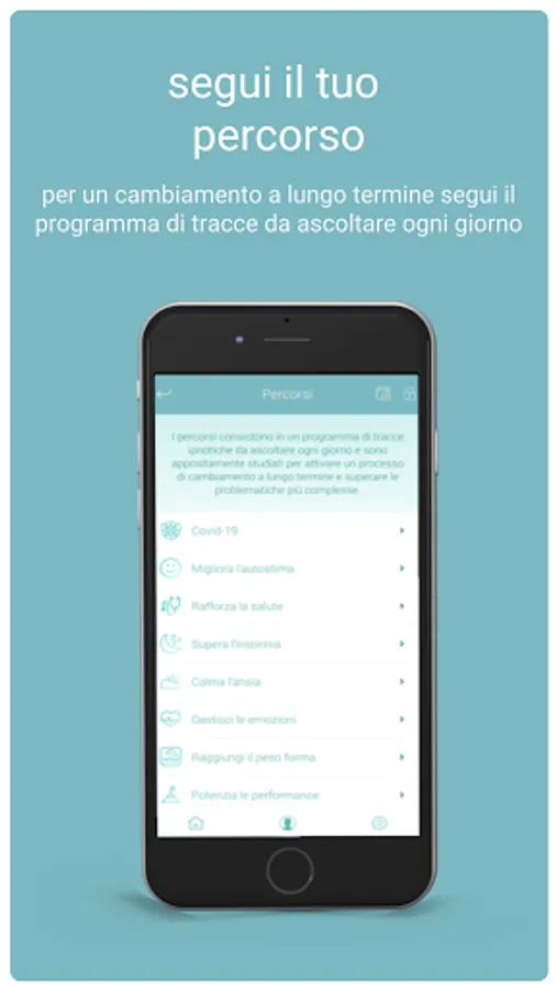 You can also take the specially designed paths, composed of a program of hypnotic tracks to listen to every day, to activate a long-term process of change and overcome the most complex problems.