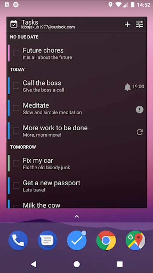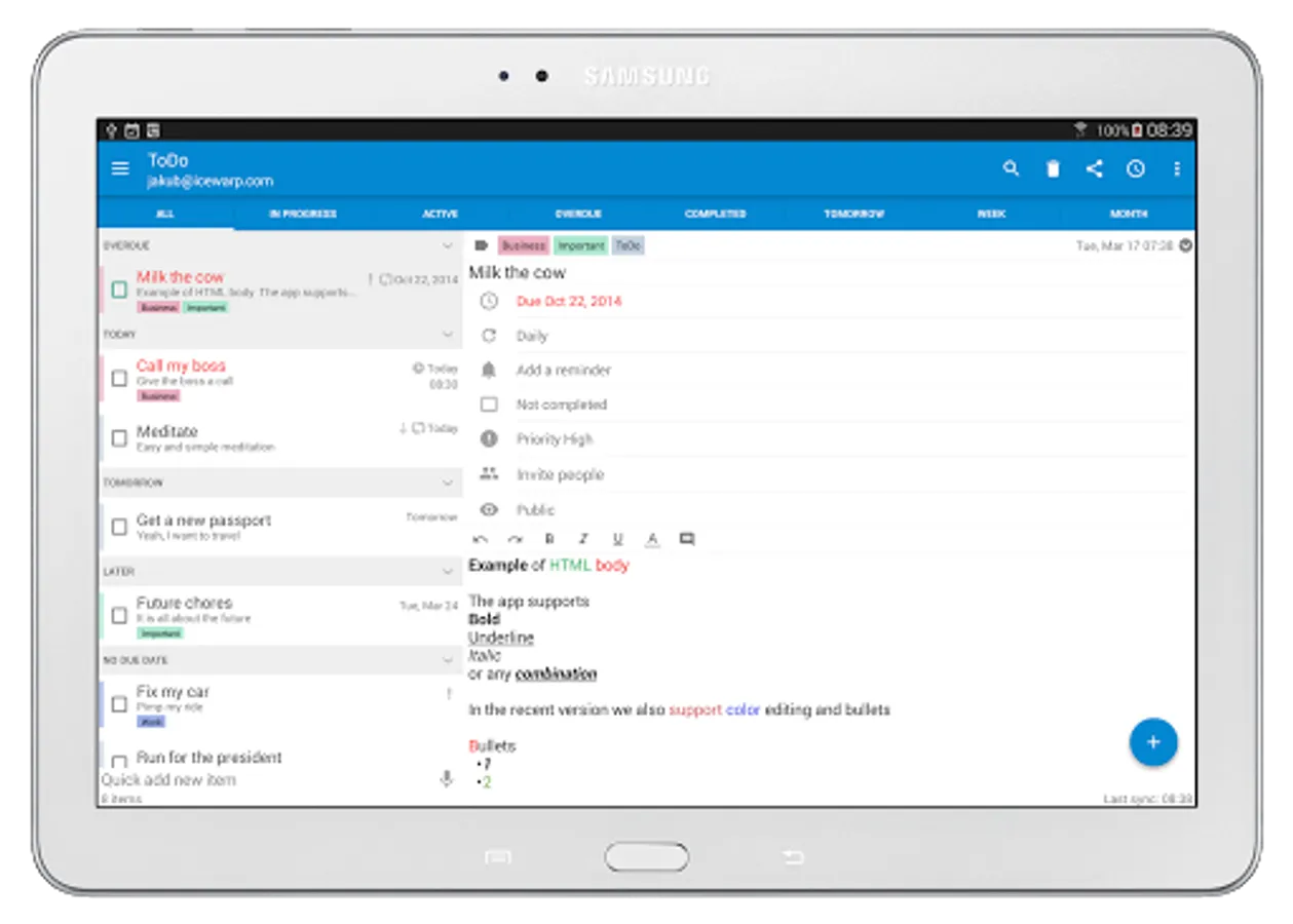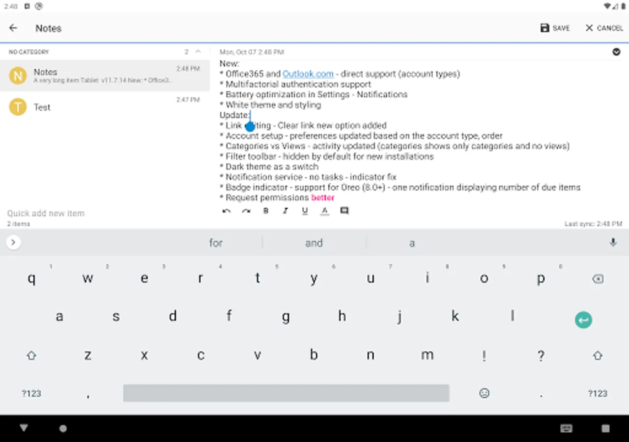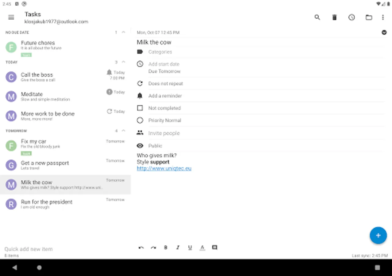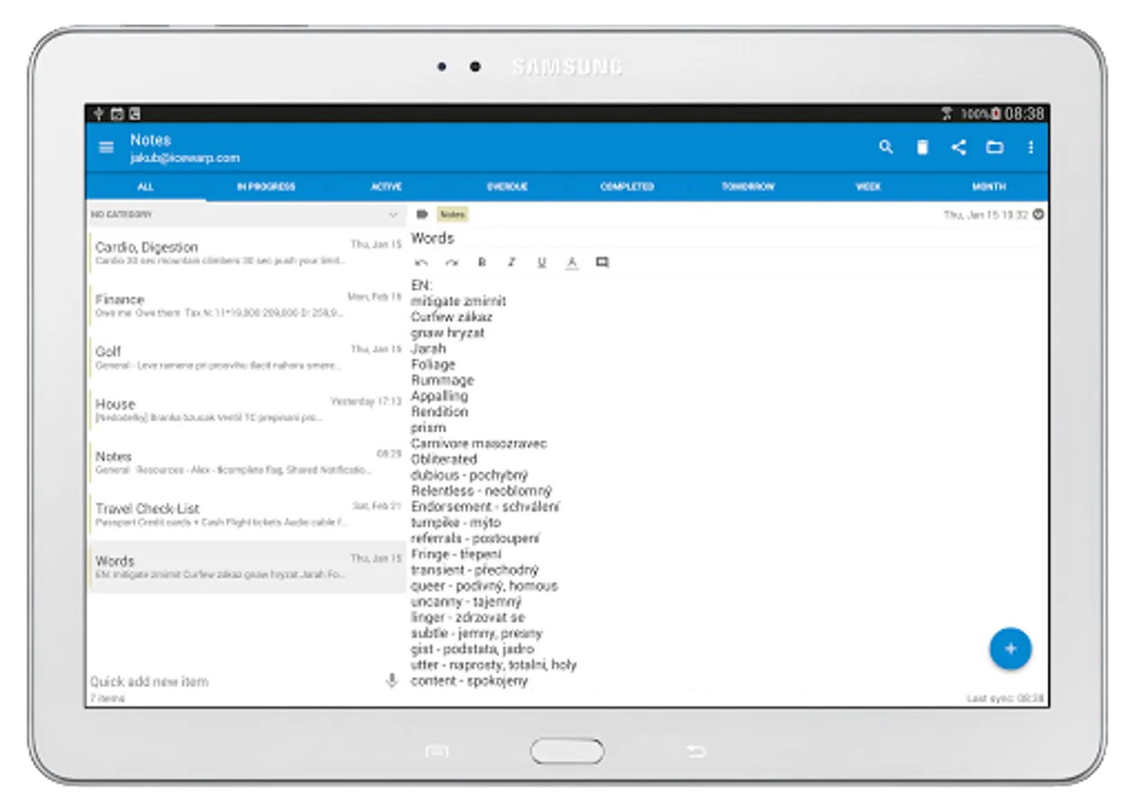 Tasks & Notes is a fully featured tasks with GTD, notes and check-list app with Office365, Google Tasks, Outlook.com and Exchange server support. Synchronize your items between your tablet, phone and PC with your Exchange server.