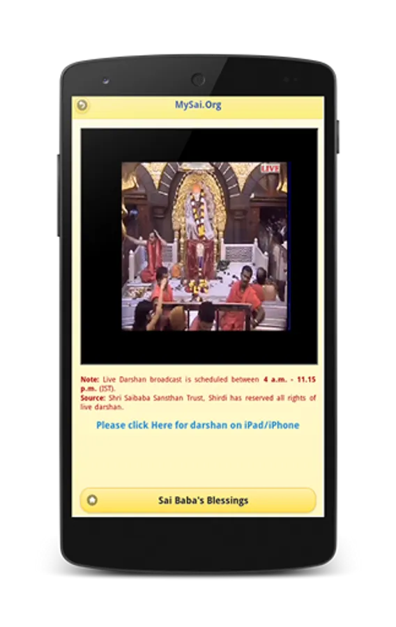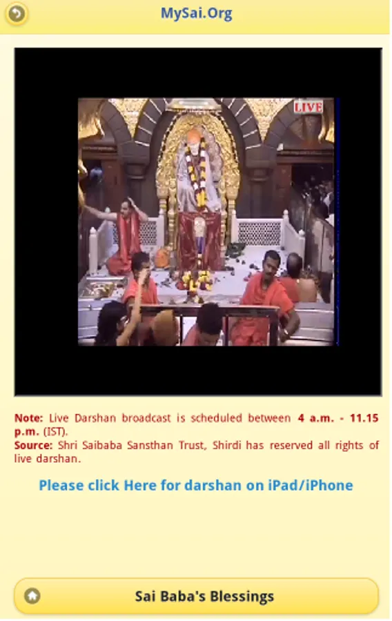 3. Get Live Darshan from Shirdi. Live Darshan broadcast is scheduled daily between 4 AM - 11.15 PM (IST).