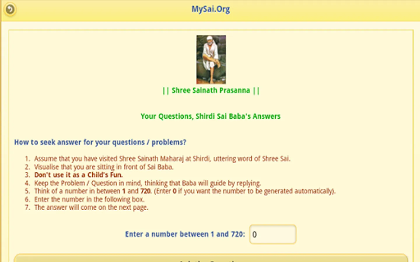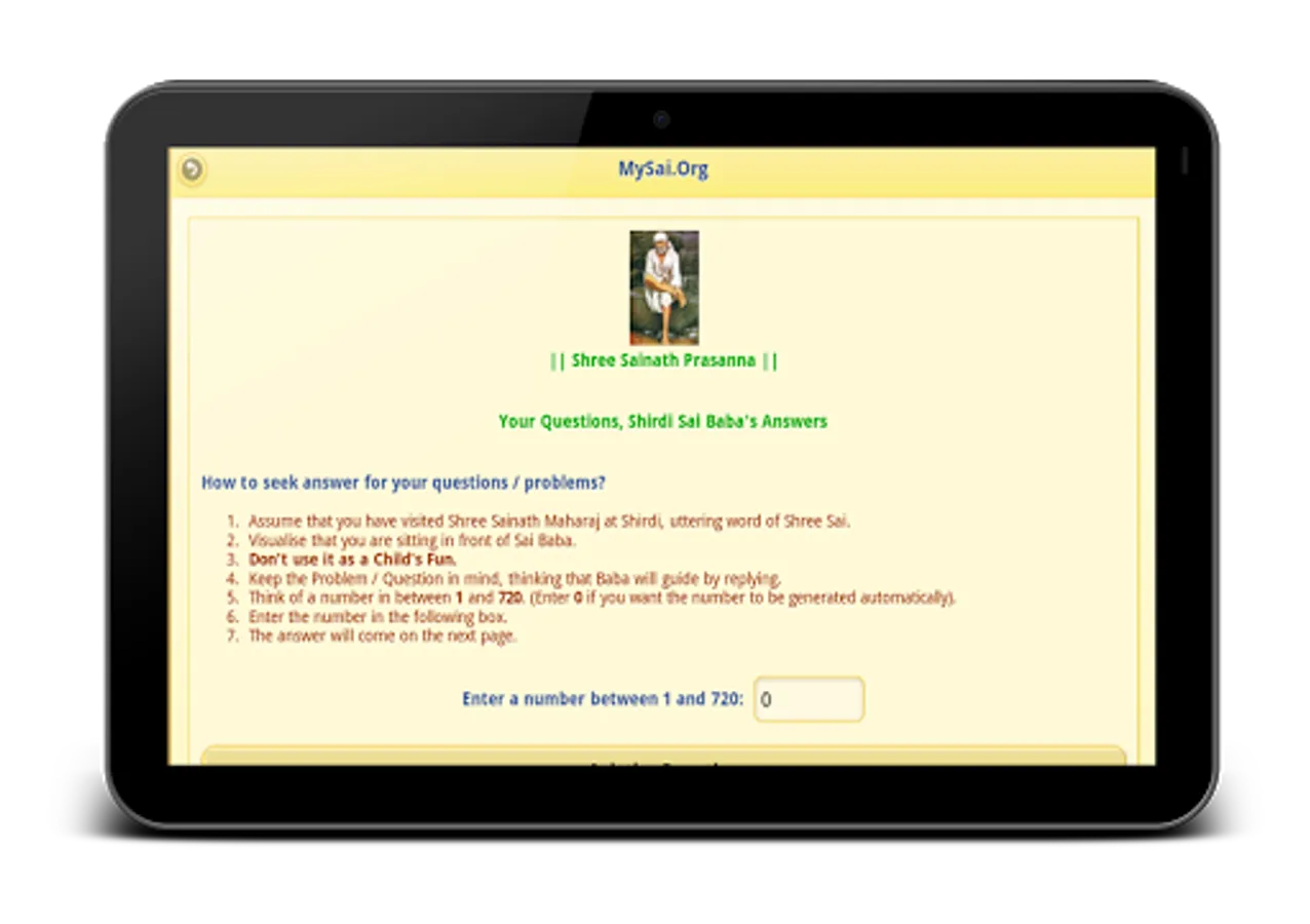 2. Get Answers to your Questions and Problems from Shree Sai Baba Himself using the miraculous Shree Sai Prashanavali. This Sri Sai Prashanavali is based on a very old book written by Shri Madhav Lele, with the divine inspiration and guidance of Shree Sai Baba Himself. Millions of devotees have benefited and have got answers to their questions and problems from this miracle. If you do not understand the answer immediately, then please do have patience. The answer will be more meaningful with time.