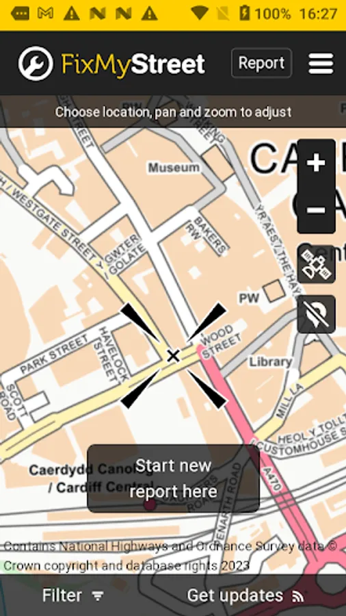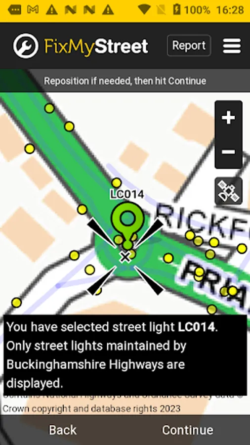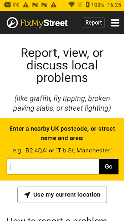 Using this app you can report common street problems, like potholes or broken street lights, to councils throughout the UK.