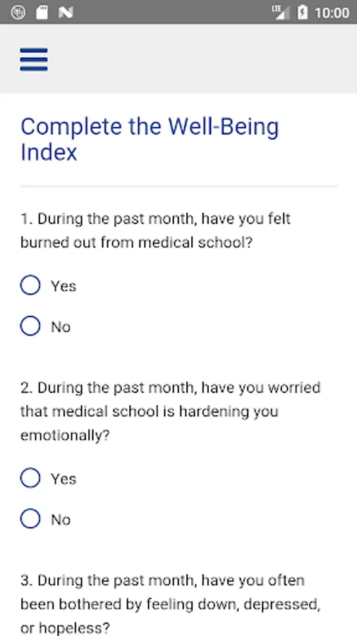 Invented by Mayo Clinic, the Well-Being Index is a 100% anonymous tool that evaluates multiple dimensions of distress in 9 questions. This app allows physicians, residents, fellows, medical students, nurses, nurse practitioners, physicians assistants, and other healthcare professionals to accurately assess well-being. It also provides resources, allows users to track wellness over-time and compare their well-being to peers, and establishes a more accurate scale of wellness across the industry.