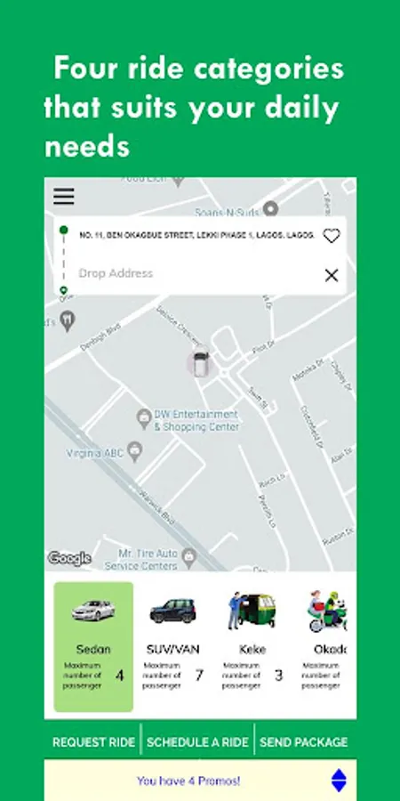 Experience a new wave and breath in transportation and logistics: Request a ride, schedule a ride, and send package all in one app! Our trained and dedicated drivers are poised to providing you with an exceptional and unforgettable service experience in your day-to-day ride hailing and logistics activities.