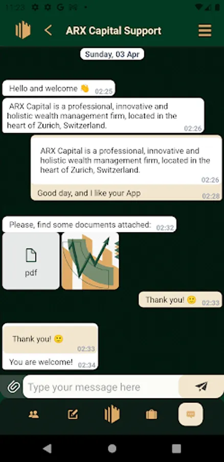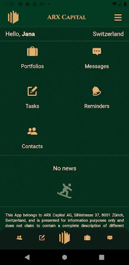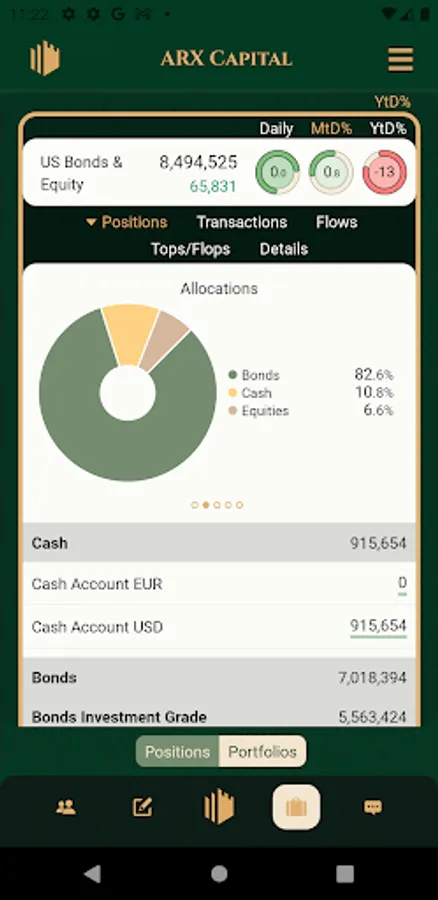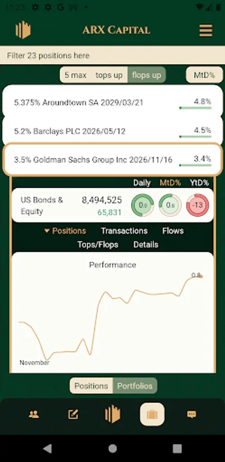 Our App has 5 key functionalities. It aggregates in one place all your necessary ARX Capital contacts, daily business tasks and document workflows, allows you to see a performance-ranked list of individual investments as well as consolidated portfolios on your radar, and communicate with us via a dedicated and secure channel.