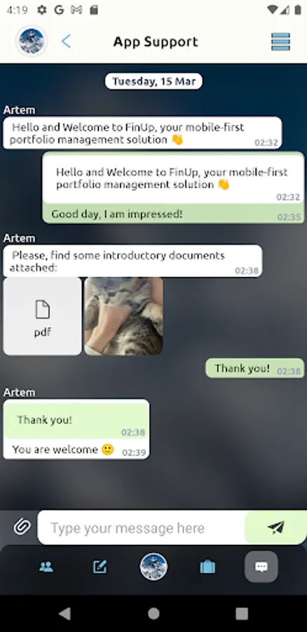 - Direct and live chat, through which you can ask questions about anything related to your bundle of portfolios, and get responses back in a secure and dedicated communication channel