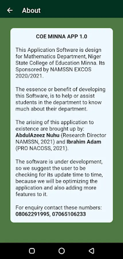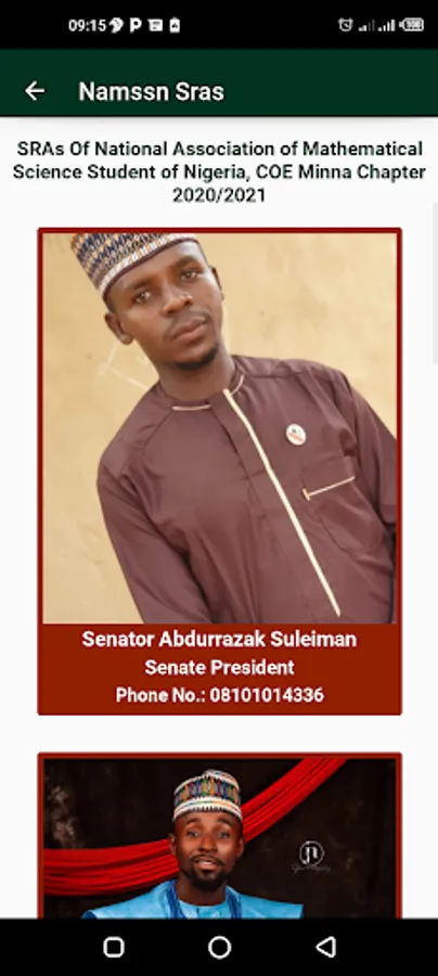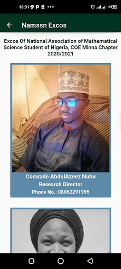 4. Images along with names, phone number and rank of NAMSSN COE Minna Excos 2020/2021