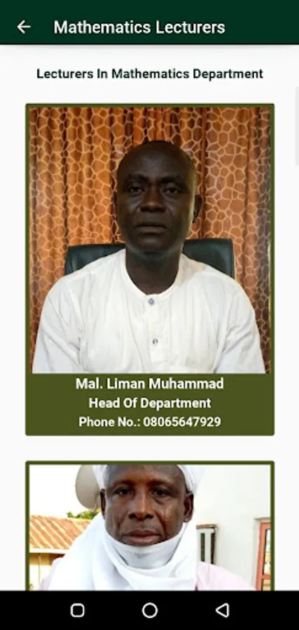 3. Images along with names, phone number and rank of all lecturers in the department