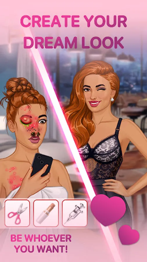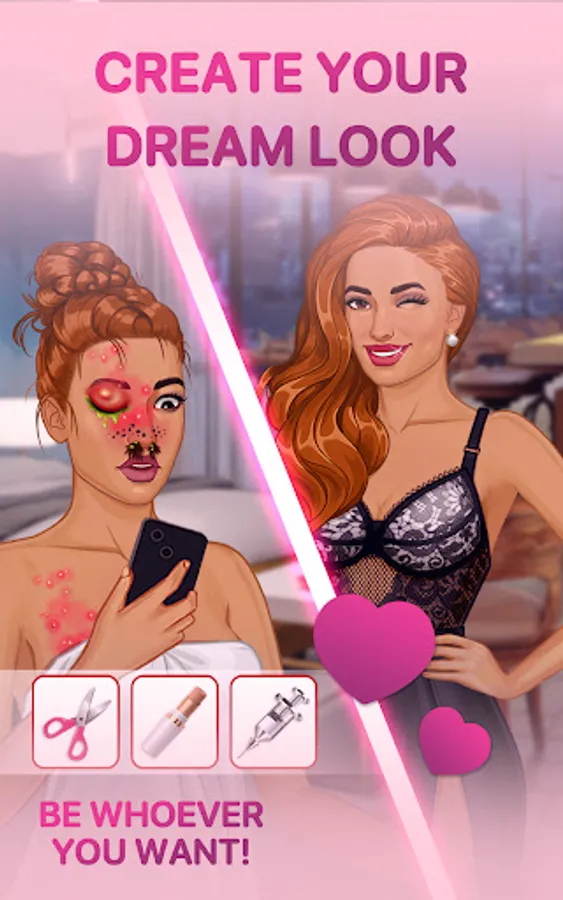 Yes, in Winked – it’s all about love! And that includes loving yourself. Choose how you want your avatar to look and get ready for the perfect romance adventure. The right hairstyle and outfit can sweep your date off their feet, so make smart choices!