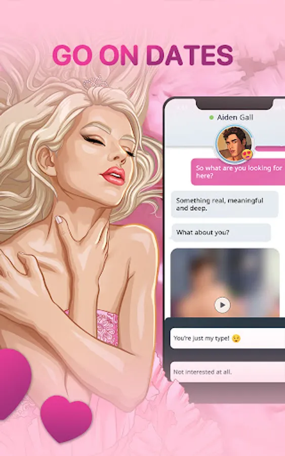 Each character has a rich and developed personality and storyline that is discovered through chat messages and dates. Find all the fun, intriguing and surprising tidbits about them called Aspirations: leave the best Impressions on your virtual lover and find all their Secrets, Fantasies, and Favorites, available to view at any time in the match profile Gallery! The more you get to know the characters, the more you will start to feel like they are a part of your life.