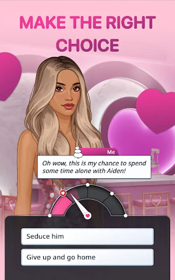 Communication between you and your match may be a prewritten story, but that doesn’t mean you can’t influence it in any way! The choices you make matter and have a direct consequence on your relationship status. If you like someone, say the right things and level up your relationship. You will then be rewarded with an even better gaming experience, so don't be afraid to show your love.