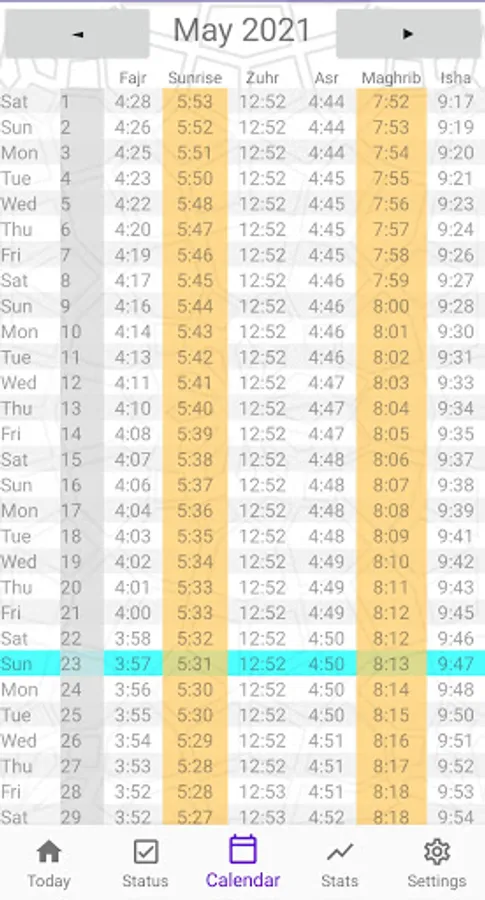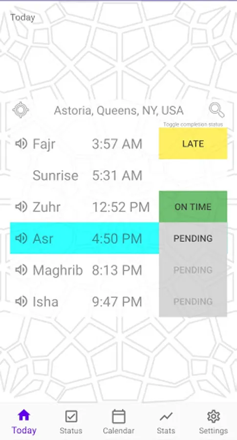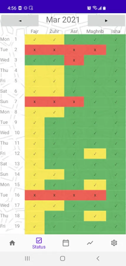 - Ability to easily view and update prayer completion statuses for previous days to assist with making up missed salaat or correcting input mistakes