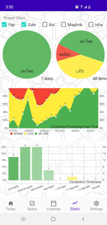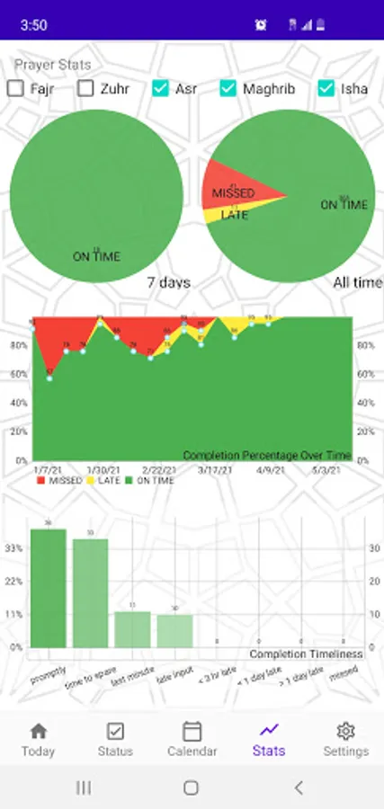 - Prayer completion and timeliness graphs and statistics to help you see how you are doing