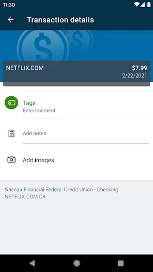 Organize transactions by adding tags, notes and photos of receipts and checks