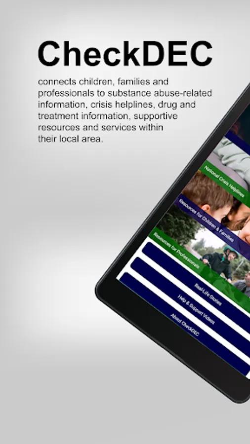 The app also connects multidisciplinary professionals who are in contact, care or supervision of children who are have a parent or caregiver in legal or illegal substance use with resources, services and information. Professionals can share and download information regarding substance abuse and share resources with the children, families and community they serve or where they live.