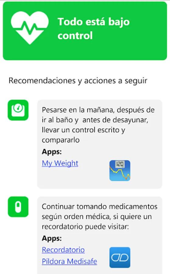 The content of this application is focused on detecting symptoms of decompensation, however, it should not be interpreted or treated as a substitute for any form of diagnosis or treatment of any kind. The content and use of this application does not seek to create a “doctor-patient relationship, therefore, patients should continue to consult health professionals (doctors, nurses, specialists) if they have any concerns or concerns regarding their health status. .