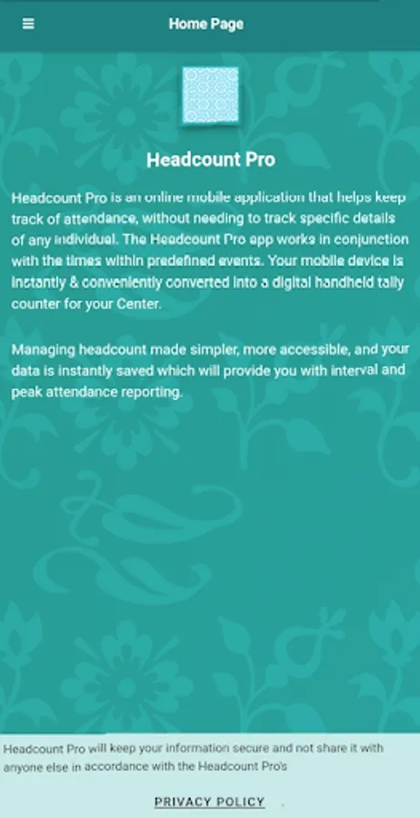 Headcount Pro is an online mobile application that helps keep track of attendance, without needing to track specific details of any individual. The Headcount Pro app works in conjunction with the times within predefined events. Your mobile device is instantly & conveniently converted into a digital handheld tally counter for your center.