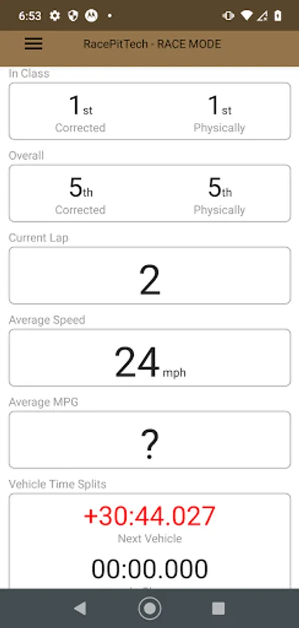 Each vehicle you have entered in the race will have a detailed section with their current place in their class and overall, both physically and on corrected time. It also has important details such as average speed and their time splits to the next closest vehicle, to first place in their class and to first place overall allowing you to figure out how hard to push. It can also be used to track how long pits take, how much fuel the vehicle took and then can track the average miles per gallon the vehicle is using. It also allows you to track vehicles current location, if they have done special lap events, if they start, DNF, DNS, finished or passed a specific mile marker. All of these details together allow you to see how your competition is doing, how your team is doing and how you should adjust your race strategy.