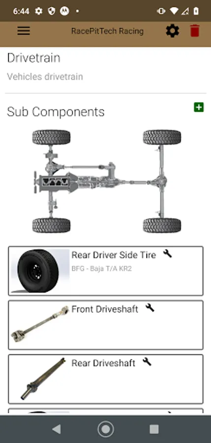 A key feature is the ability to create multiple setups for all of your vehicles. Store details about every single part on your vehicles, special notes about how to install or remove them, detailed statistics such as tire pressure, rebound and compression settings for shocks, max torque for bolts or any other details you would like. All of these details can be duplicated and changed for different races or different terrain so your entire team can know the details of the part for that specific race. Instead of a pit waiting until they can contact the race car and ask what the specific details for a part are or dig through a bunch of paperwork you can have it all in one place and look it up with RacePitTech. Each part is also linked to the inventory for the whole team allowing you to see where the spares for this specific item are, how many you have and if parts work between vehicles.
