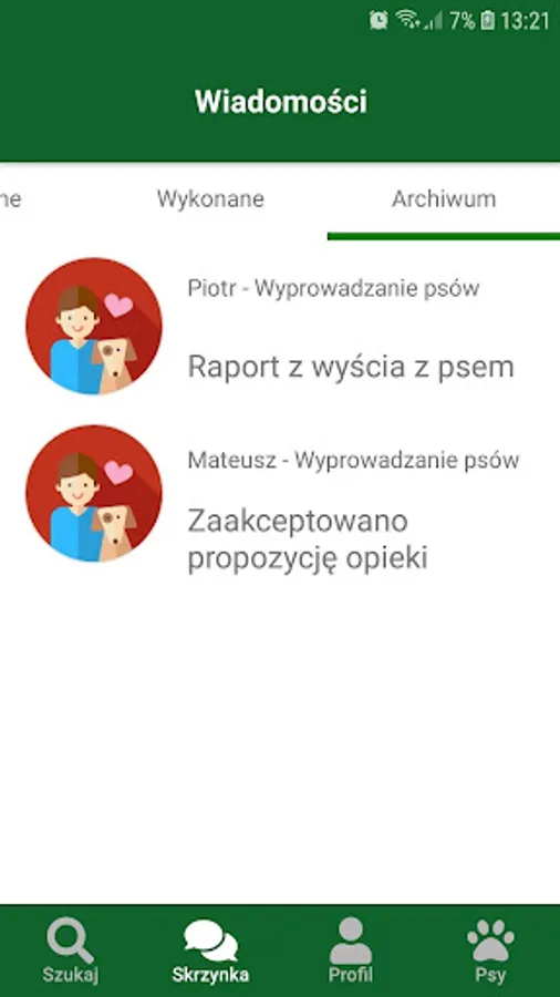 An application created for the Dogomo.pl website. Indispensable for carers, optional for owners. Allows fast communication between users. Sending reports from dog walks, photos and short text messages. Download and join us today.