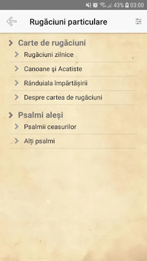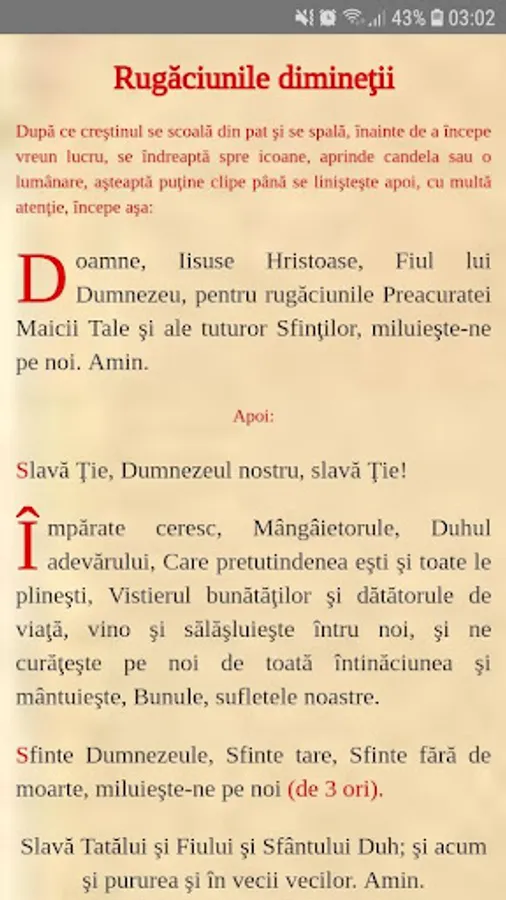 Prayer and Service Book of the Orthodox Church, containing morning and evening prayers, ordination for confession and communion, canons, acatits and carols, but also the service of Vespers, Liturgy and Liturgy. There is a special compartment in which the services of Ceaslov, Mina, Triod, Penticostar, Liturgy and Molitfelnic are published. The application is developed by hieromonk Petru Pruteanu and Gabriel Balasz from BitVice Studio.