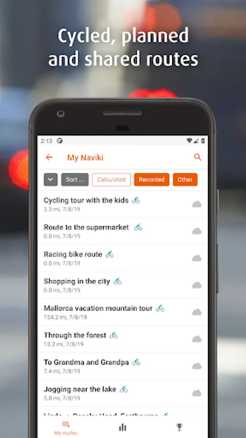 Just one tap and Naviki records the path you cycle and stores it in your personal Naviki Cloud. Easily create an impressive statistic on www.naviki.org! You can always add an individual description.