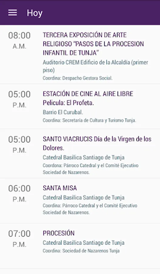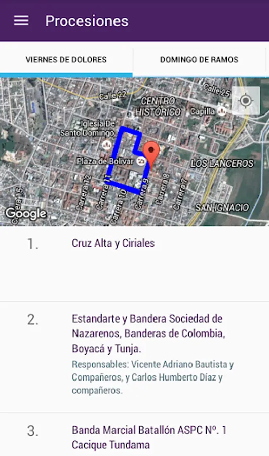 Official schedule of Holy Week in Tunja on your SmartPhone, see the daily schedule and look at the path where the processions pass