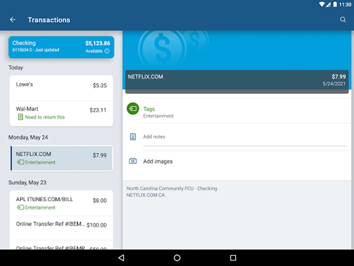 Keep your transactions organized by allowing you to add tags, notes and photos of receipts and checks.